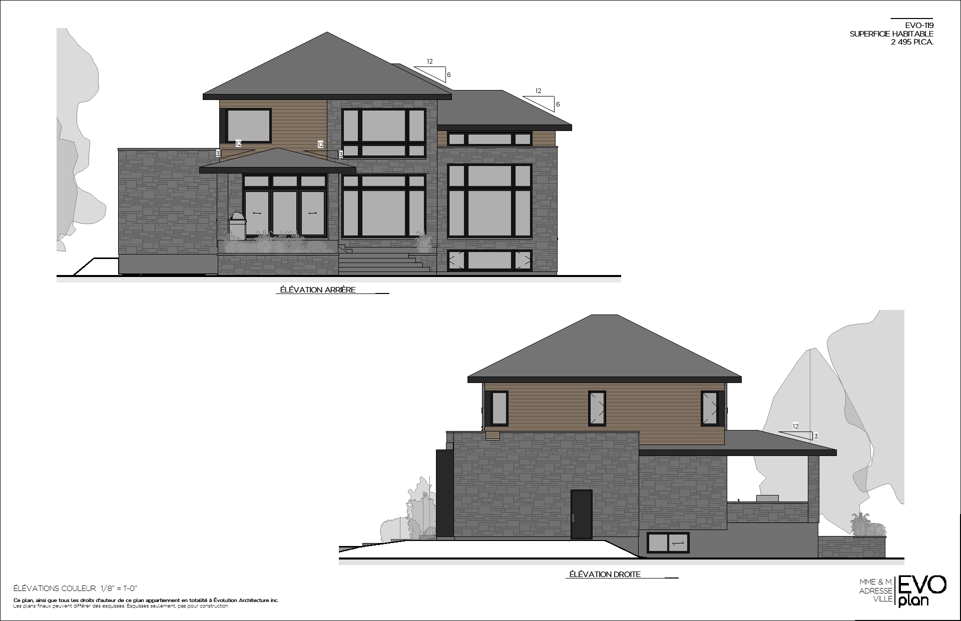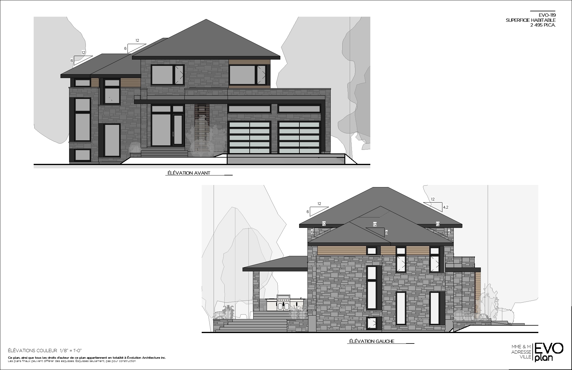 Important : ne sont pas inclus les plans de plomberie, d’électricité ou de design intérieur, ni les documents d’ingénierie ou d’arpentage. Le choix des matériaux extérieurs demeure entièrement à votre discrétion.